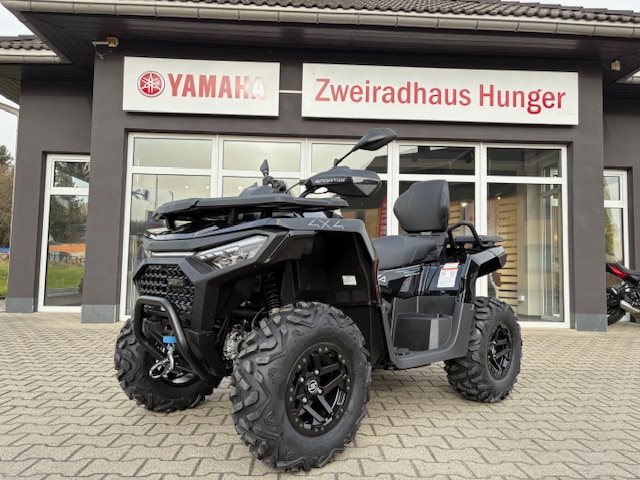 // mit ABS// elektronische Servolenkung (EPS)// langer Radstand von 2.395 mm// zuschaltbarer Allradantrieb mit Differentialsperre hinten// elektrisches Daumengas// 12" Kenda Offroad-Bereifung auf Aluminiumfelgen// Sozius Rückenlehne mit Handgriffen// Seilwinde mit Nylonseil// Abdeckungen für Gepäckträger vorn und hinten// 7-Zoll-Multifunktions-TFT-Display, das über Work- und Drive-Modi verfügt// beleuchtete Bedienelementen// großer Komfort-Soziussitz für zwei Personen sowie großzügigem Stauraum an Front und Heck// mehrere Ladebuchsen (USB-C, USB)// LED-Front- und Heckscheinwerfer// professionelle Seilwinde mit 1.360 kg Zugkraft inklusive Nylonseil und Fernbedienung// Front-Rammschutz und Unterbodenfahrschutz//