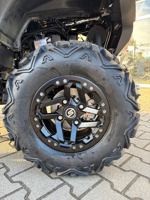 // mit ABS// elektronische Servolenkung (EPS)// langer Radstand von 2.395 mm// zuschaltbarer Allradantrieb mit Differentialsperre hinten// elektrisches Daumengas// 12" Kenda Offroad-Bereifung auf Aluminiumfelgen// Sozius Rückenlehne mit Handgriffen// Seilwinde mit Nylonseil// Abdeckungen für Gepäckträger vorn und hinten// 7-Zoll-Multifunktions-TFT-Display, das über Work- und Drive-Modi verfügt// beleuchtete Bedienelementen// großer Komfort-Soziussitz für zwei Personen sowie großzügigem Stauraum an Front und Heck// mehrere Ladebuchsen (USB-C, USB)// LED-Front- und Heckscheinwerfer// professionelle Seilwinde mit 1.360 kg Zugkraft inklusive Nylonseil und Fernbedienung// Front-Rammschutz und Unterbodenfahrschutz//